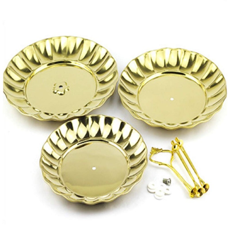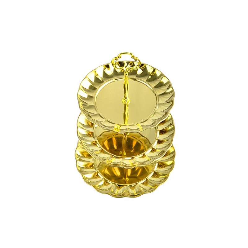 Présentoir à gâteaux 3 niveaux en acier inoxydable doré, élégant et robuste, avec plateaux 22/20/18 cm et hauteur totale 32 cm, idéal pour sublimer desserts et pâtisseries.