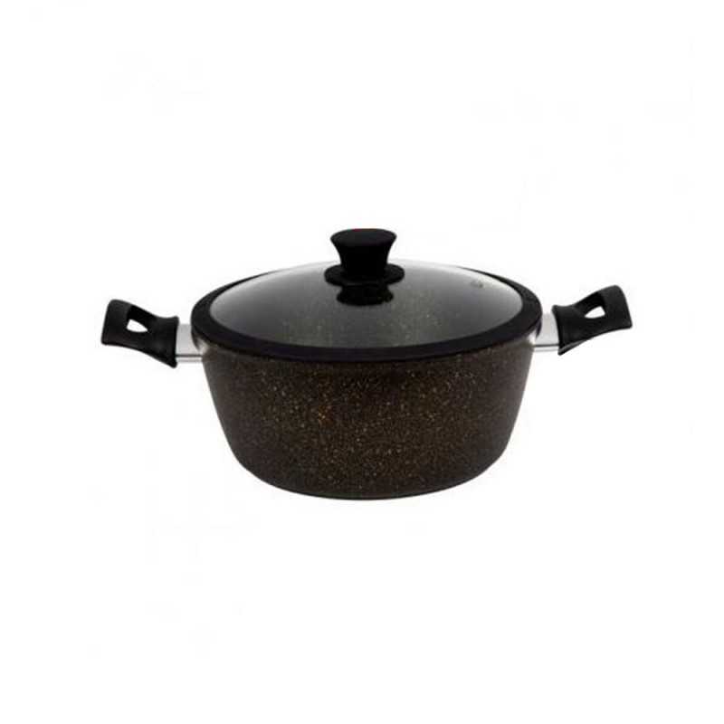 Cook'Art Forged Faitout Granite avec Couvercle: Dimension: 20 cm • Gamme: Forged • Couleur: Black Moucheté Gold • Fixation du manche exceptionnelle : INOX 3mm • Epaisseur: 4mm, aluminium sablé : Robustesse à toute épreuve • Revêtement antiadhésif • Couche renforcée • Attestation sanitaire délivrée par le ministère de la santé publique • Ne contient pas d'acide Perfluorooctanoïque Poignées en Bakélite • Free PFOA.