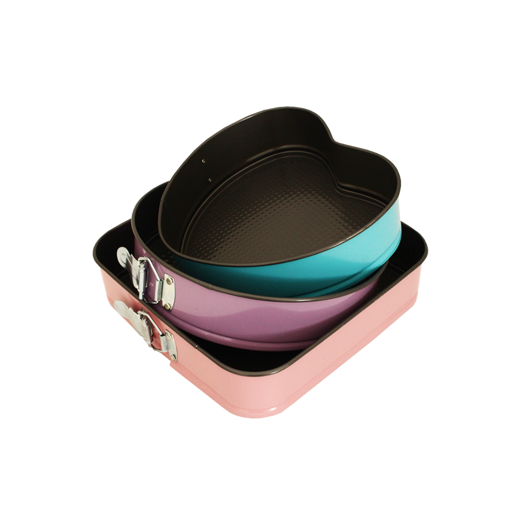 3 Moules à Gâteau Antiadhésifs à Charnière Rond-Cœur-Carré QYX-404