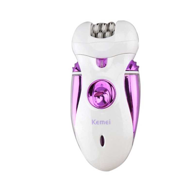 Epilation 4 en 1 Sans Fil KEMEI: Contenance / Fonction produit: 1 tête d’épilateur - 1 tête de rasoir - 1 tête de tondeuse - 1 tête de dissolvant de callosités pour répondre à différentes exigences • 2 vitesses pour s’adapter à différents types de cheveux (cheveux fins ou grossiers) pour une grande efficacité, plus sûr que les grattoirs • Sans fil et rechargeable • Caractéristiques: Sûr et beau hors-regard; Lame réglable en acier à haute teneur en carbone, inoxydable; Conception ergonomique et à faible bruit; Haute qualité; épilateur pour dame Plug And Play Vitesses de coupe régulées par microprocesseur.