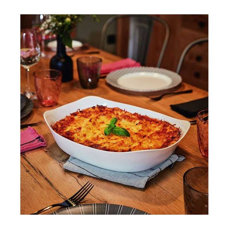Plat à Four Luminac: Dimension: 34 x 25 cm (2.7 Litres) • Couleur: Blanc • Forme: Rectangulaire • Résistant aux chocs mécanique et thermiques • Pratique et solide • Facile à nettoyer • Matière: Verre.