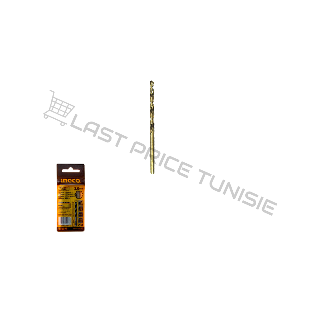 Foret à métaux INGCO - Diamètre : 3.0mm - Longueur totale : 61mm - Longueur d'utilisation: 33mm - Emballé dans des sacs en poly