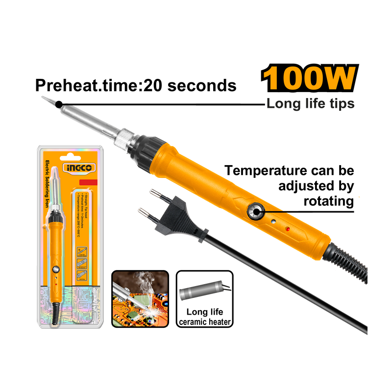 Ce fer à souder est soigneusement emballé dans une carte coulissante, le rendant facile à transporter et à stocker. Que vous soyez un professionnel ou un amateur passionné, le Fer À Souder Thermique 100W INGCO SI0110831 est l'outil idéal pour réaliser des soudures précises et durables.