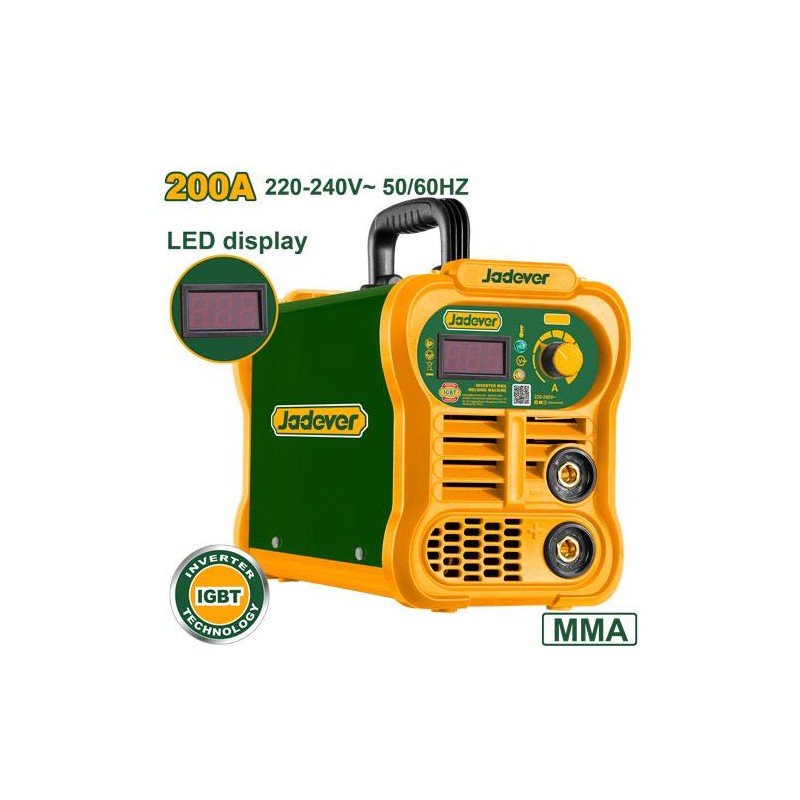 Machine à souder MMA inverter 200A JADEVER – puissance, stabilité d’arc et efficacité professionnelle.