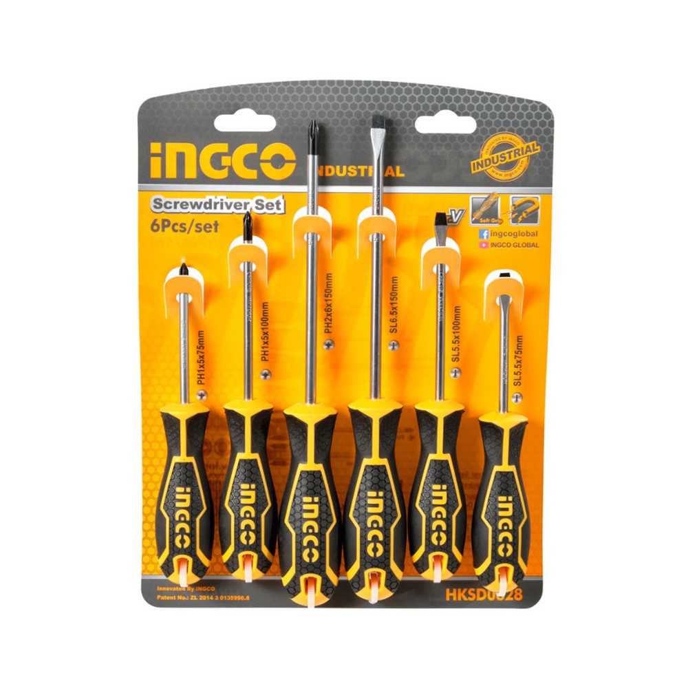Jeu de tournevis 6pcs Finition acier CRV noir – HKSD0628 INGCO