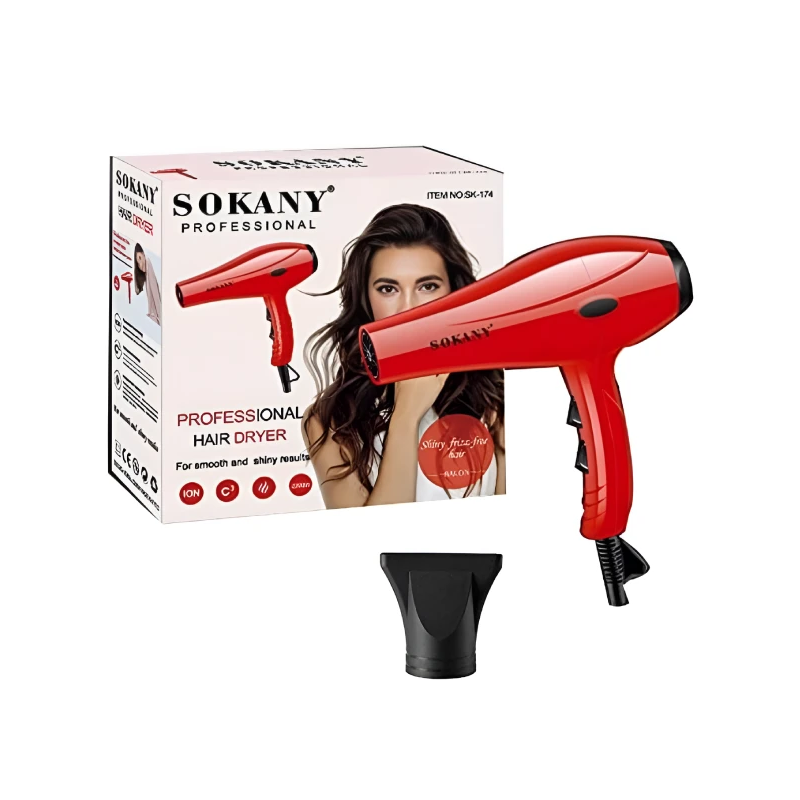 Sèche-cheveux professionnel SOKANY 2200W rouge, puissant et rapide, avec filtre amovible, protection contre la surchauffe, design élégant rouge, adapté à tous types de cheveux.